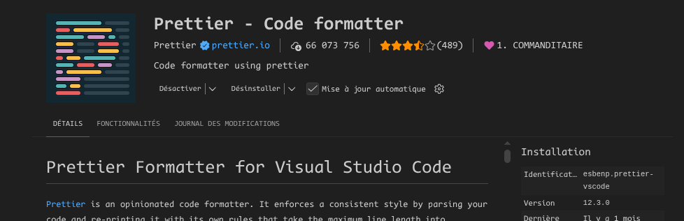 - Correcteur manitsy izay azony ahitsy ao anaty Javascript sy SCSS : Prettier